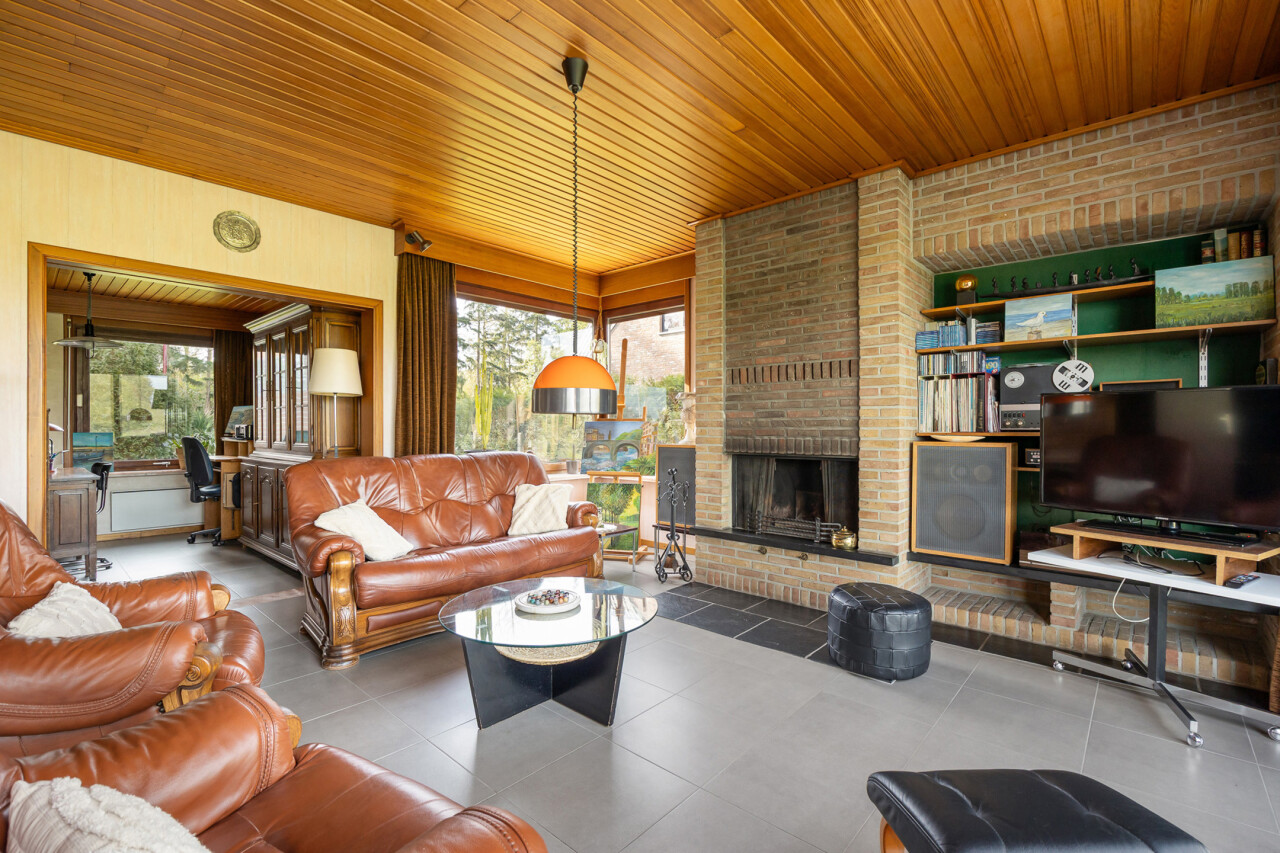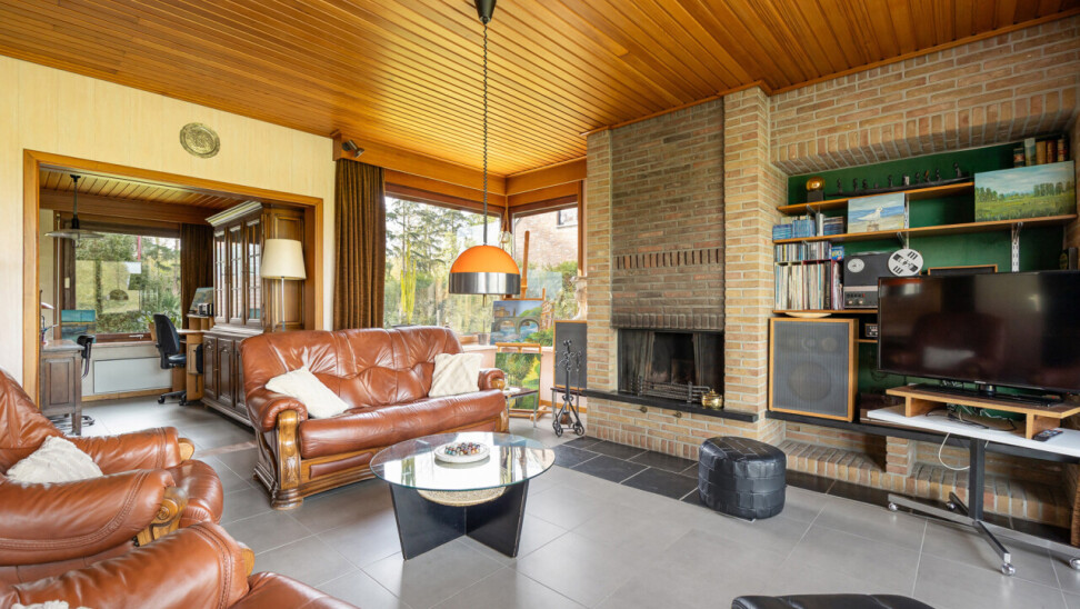 Bij het betreden van de woning komt u in de inkomhal met gastentoilet. Van hieruit heeft u toegang tot de keuken en de lichtrijke leefruimte met open haard, waar grote raampartijen het prachtige uitzicht maximaal tot zijn recht laten komen. Aansluitend bevindt zich een praktische bureauruimte.