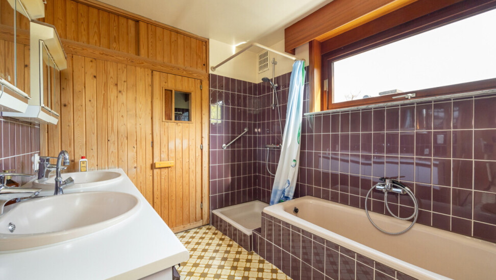 Op de verdieping bevinden zich momenteel drie slaapkamers en een ruime badkamer uitgerust met douche, ligbad en sauna, een meerwaarde voor wie comfort en ontspanning weet te appreciëren.